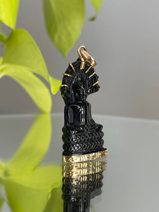 10K Cow Bone Khmer Naga Buddha Pendant #658