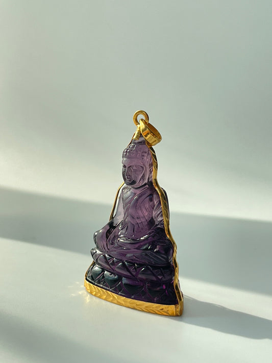 10K Gold Khmer Style Purple Buddha Pendant #308