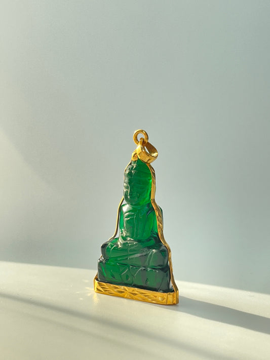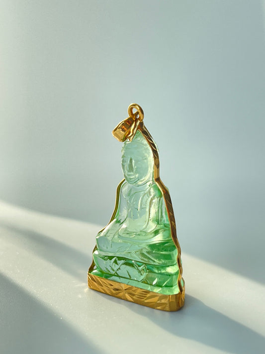 10K Gold Khmer Style Light Green Buddha Pendant #336