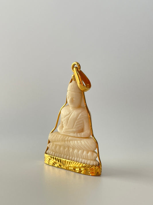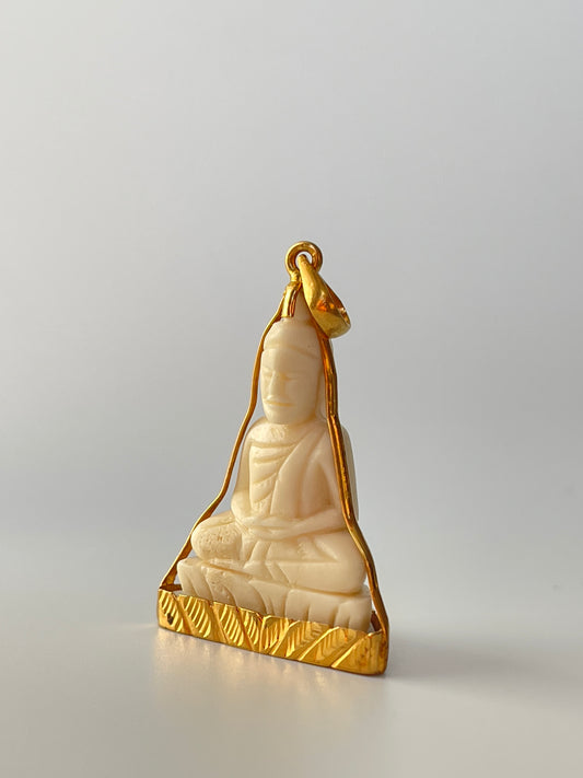 10K Cow Bone Khmer Buddha Pendant Meditation Pose #382