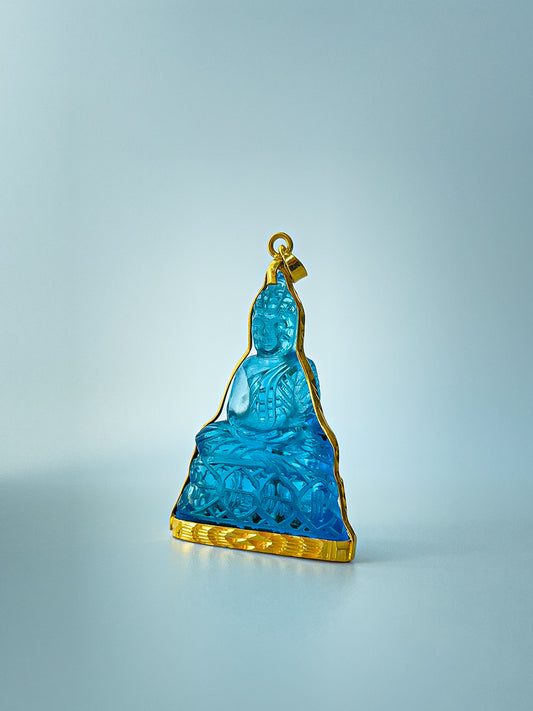10k Blue Khmer Buddha Pendant Meditation Pose #744