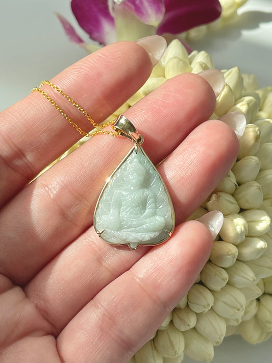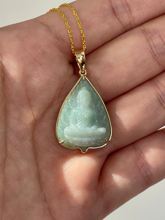Jade Banyan Leaf Buddha Pendant 14k Gold #906