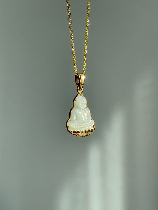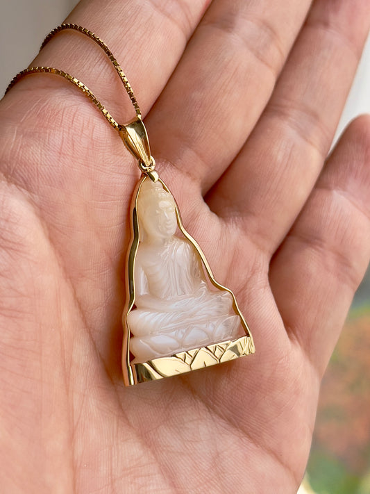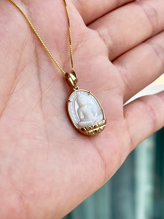 Mother of Pearl Buddha Pendant in Solid 14K Gold Lotus #847