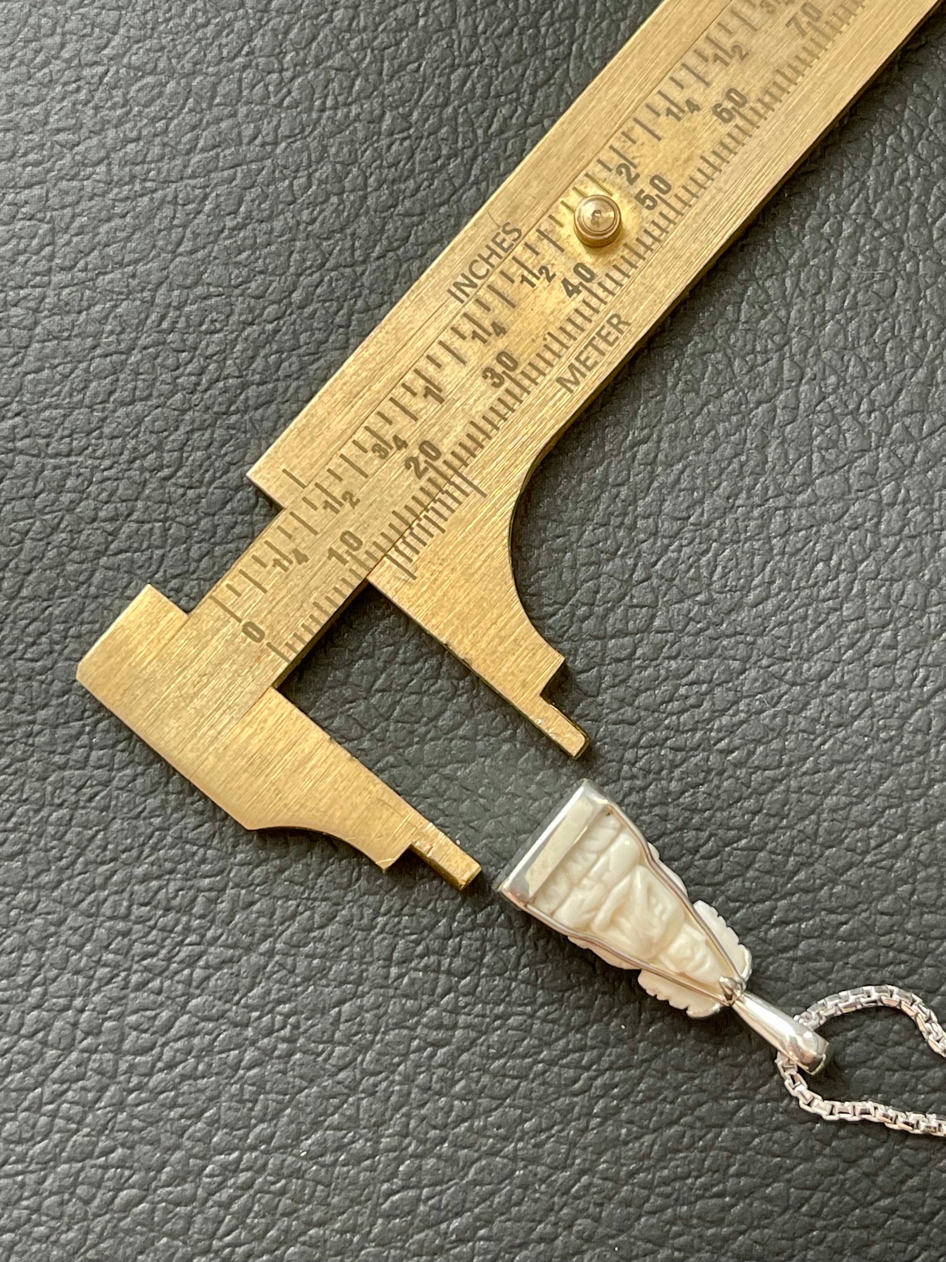 This 1-inch, four-sided piece is intricately carved and mounted in solid silver, complete with a 20-inch silver chain, as seen in the photos. Designed with a square base and a 360° rotating bail, it offers smooth movement and versatile wear. Unique, meaningful, and artisan-made, it’s a beautiful piece for everyday use or a thoughtful gift.